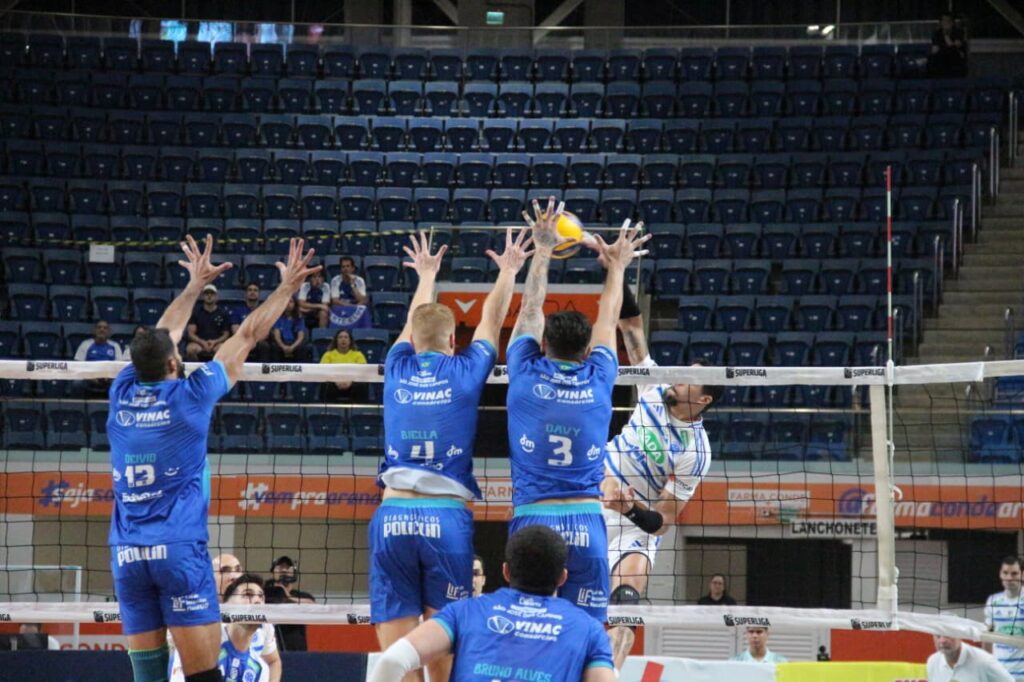 O técnico Flávio Tavares iniciou o confronto com Davy Moraes, Rodrigo Leandro, Deivid, Biella, Bruno Canhoto, Rômulo e o líbero Tiago Brendle.